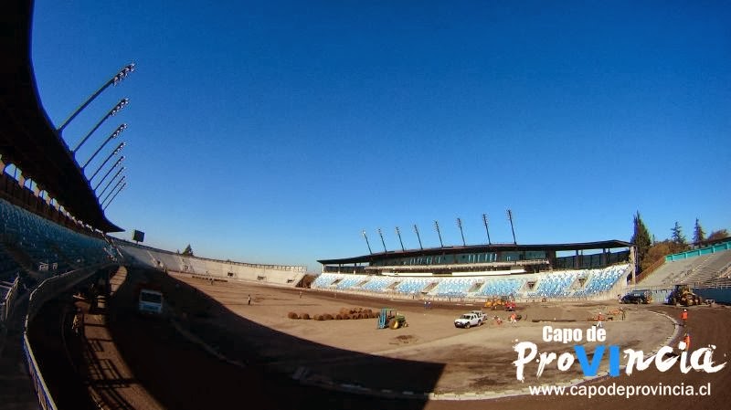 La remodelación del Estadio “El Teniente” avanza a pasos agigantados; en lo que va de la semana, ya se han instalado 4 mil de las 15 mil butacas, correspondientes a los sectores de Tribuna Andes y Marquesina, además, ya se comenzó a colocar los rolls pasto natural sobre el terreno.