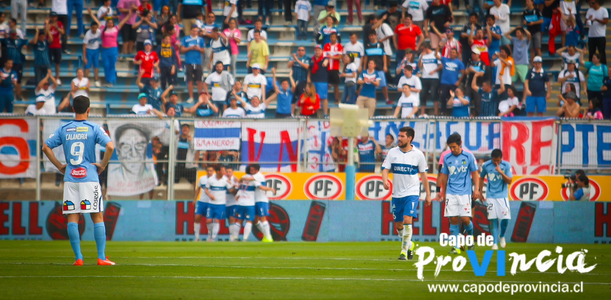 Un día para el olvido: desde el arranque del compromiso el Capo de Provincia se vio superado por el elenco cruzado, quien en retiradas ocasiones generó aproximaciones sobre el pórtico rancagüino, complicando el actuar del once celeste. Sin sorpresas llegó la primera conquista del elenco universitario mediante un certero ‘globito’ de David Llanos (11’), batiendo a un adelantado Jorge Carranza.