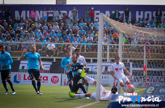 Sin poder ejercer un buen cometido, los pupilos de Arán se vieron superados por el cuadro local y quedaron en desventaja tras la conquista de Rafael Caroca (23’), quien aprovechó un error defensivo en la entrada del área celeste. Sin mayores emociones finalizó el primer tiempo con el Capo de Provincia en desventaja…