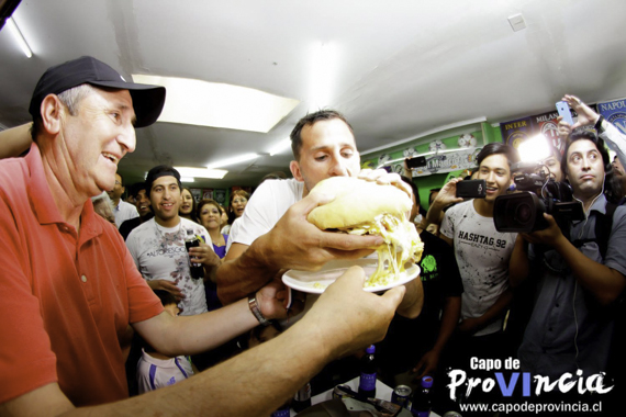 Al recinto llegó la prensa regional, algunos jugadores del plantel, dirigentes del Club e hinchas, quienes presenciaron el reconocimiento de Bernardo y «Nino», dueños del local, a este gran jugador. Luego de algunos agradecimientos hacia los dueños, se presentó ante la gran concurrencia de personas el gran sándwich, el que fue probado inmediatamente por el galardonado de la ocasión.
